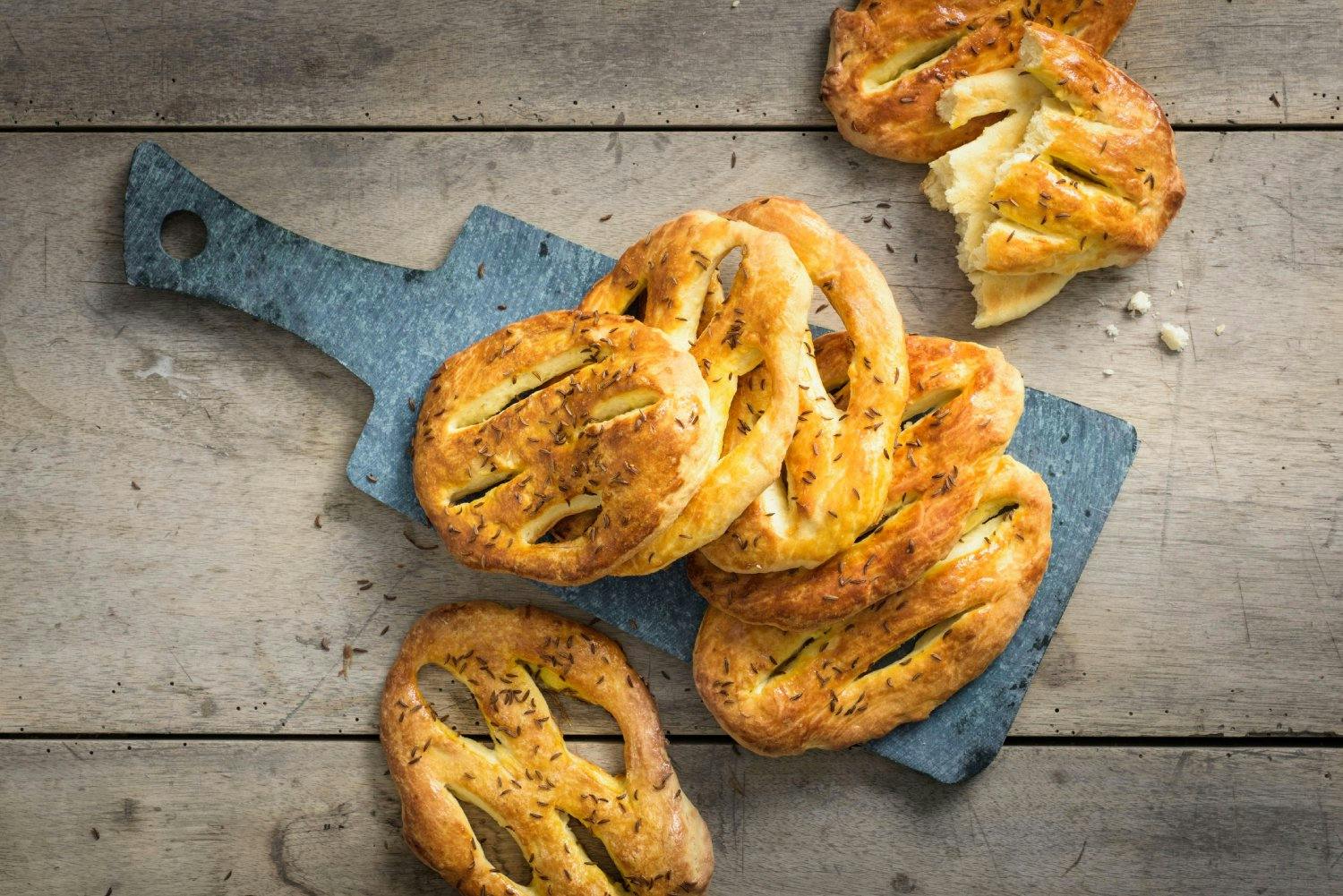 Ich liebe Käse. Und auch vor der Fastenwähe macht dieser nicht Halt. Das Gebäck esse ich blutt oder als Sandwich mit Schnittkäse belegt. Die würzige Note des Kümmels passt gut zum salzigen Käse.