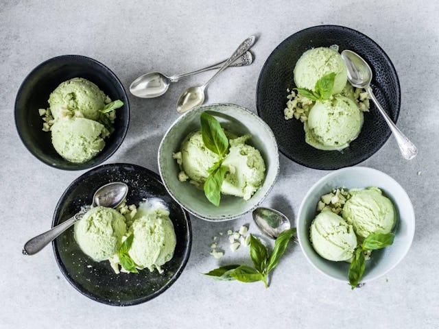 Übrigens: Hausgemachte Glace ist auch ohne Glacemaschine keine Hexerei. Gut umrühren wirkt Wunder. Hast du den Dreh erst einmal raus, kannst du deine Gäste mit ganz speziellen Sorten überraschen – zum Beispiel mit einer schön cremigen Basilikumglace mit weisser Schokolade (siehe Rezept). Selbstgemachte Glace solltest du stets im Kühlschrank auftauen lassen, so behält sie den gewünschten Schmelz am besten. Viele Coupes sind schon weit über hundert Jahre alt. Der Coupe Nesselrode mit Vanilleglace und Vermicelles – benannt nach dem Diplomaten Karl Robert Graf von Nesselrode – soll schon während des Wiener Kongresses (1814/15) erstmals serviert worden sein. Als Erfinder der Glacespezialität gilt Marie-Antoine Carême, einer der berühmtesten Köche seiner Zeit.