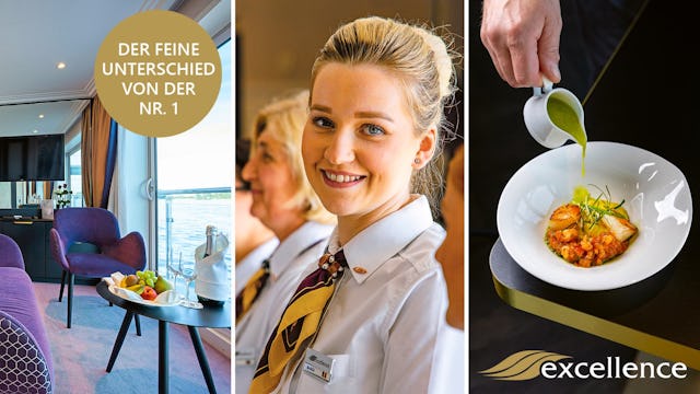 Excellence investiert kontinuierlich und substanziell in Umweltschutz und Nachhaltigkeit – das macht sie zu Europas grünster Flotte. Die Stiftung Myclimate hat die CO₂-Bilanzen für Excellence ermittelt. Der entsprechende Investitionsbeitrag ist im Reise-Arrangement inkludiert und wird in Klimaschutzprojekte investiert.