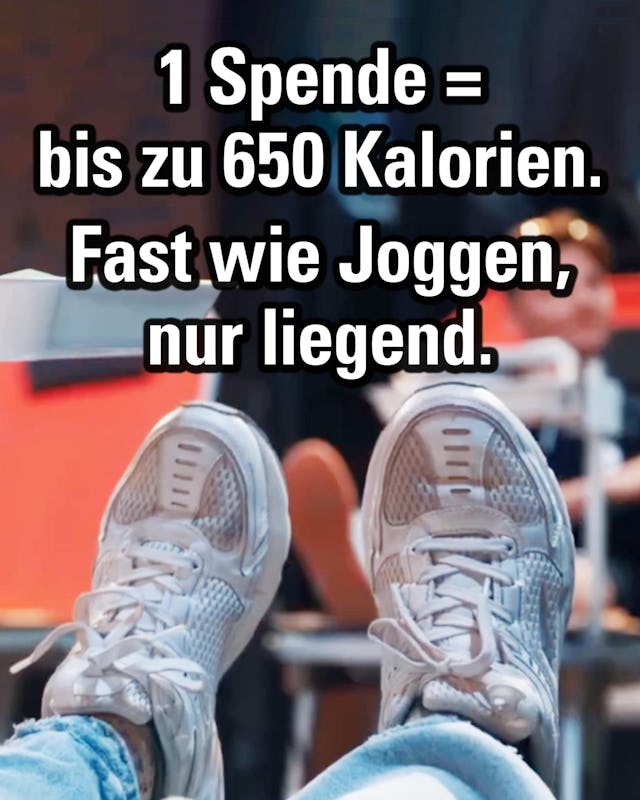 Pro Spende verbrennt dein Körper rund 650 Kalorien. Das ist vergleichbar mit einer Stunde Joggen.