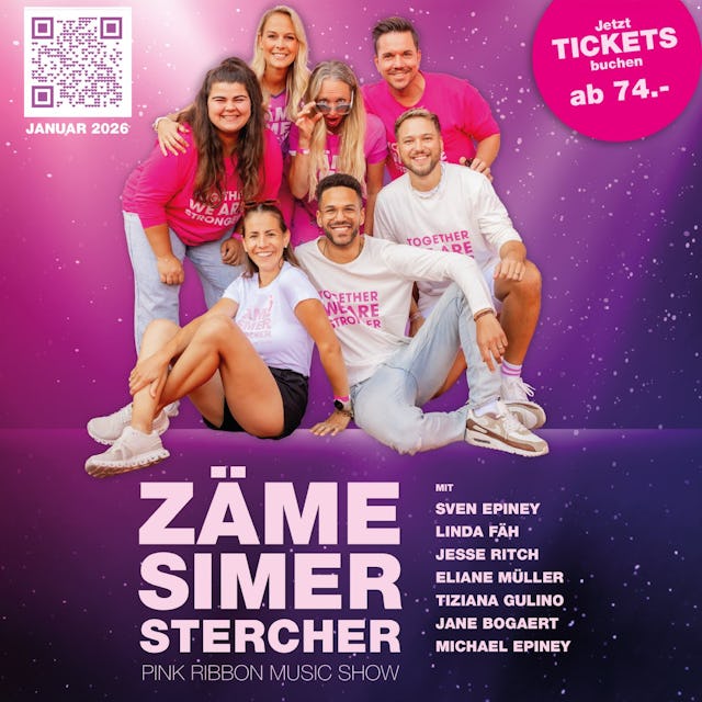 Die grosse Musikshow «Zäme simer stercher» feiert am 28. Januar 2026 Premiere in Zürich. In einer eindrucksvollen Kombination aus Gesang und Bühneninszenierung bringen bekannte Schweizer Stars wie Sven Epiney, Jesse Ritch, Eliane Müller, Tiziana Gulino, Linda Fäh, Jane Bogaert und Michael Epiney eine bewegende Geschichte auf die Bühne. Diese einzigartige Produktion mit Profi-Tänzern, Live-Band, Licht-Show und vielem mehr wird sieben Mal im Dolder in Zürich aufgeführt. Das dürft ihr auf keinen Fall verpassen!