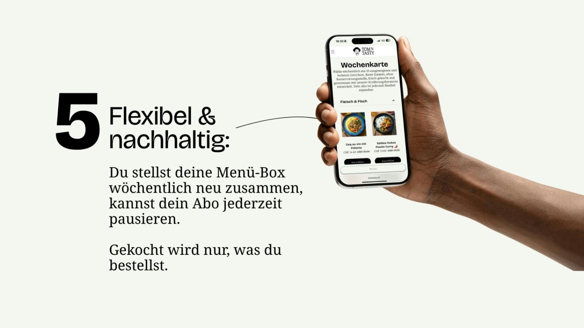 Dieser werbliche Beitrag wurde von Tom Tasty AG erstellt. Er wurde von Commercial Publishing, der Unit für Content Marketing, die im Auftrag von 20 Minuten kommerzielle Inhalte produziert, für die Publikation aufbereitet, wobei die Haftung für Inhalte (Wort, Bild) und externe Links bei Tom Tasty AG liegt.
