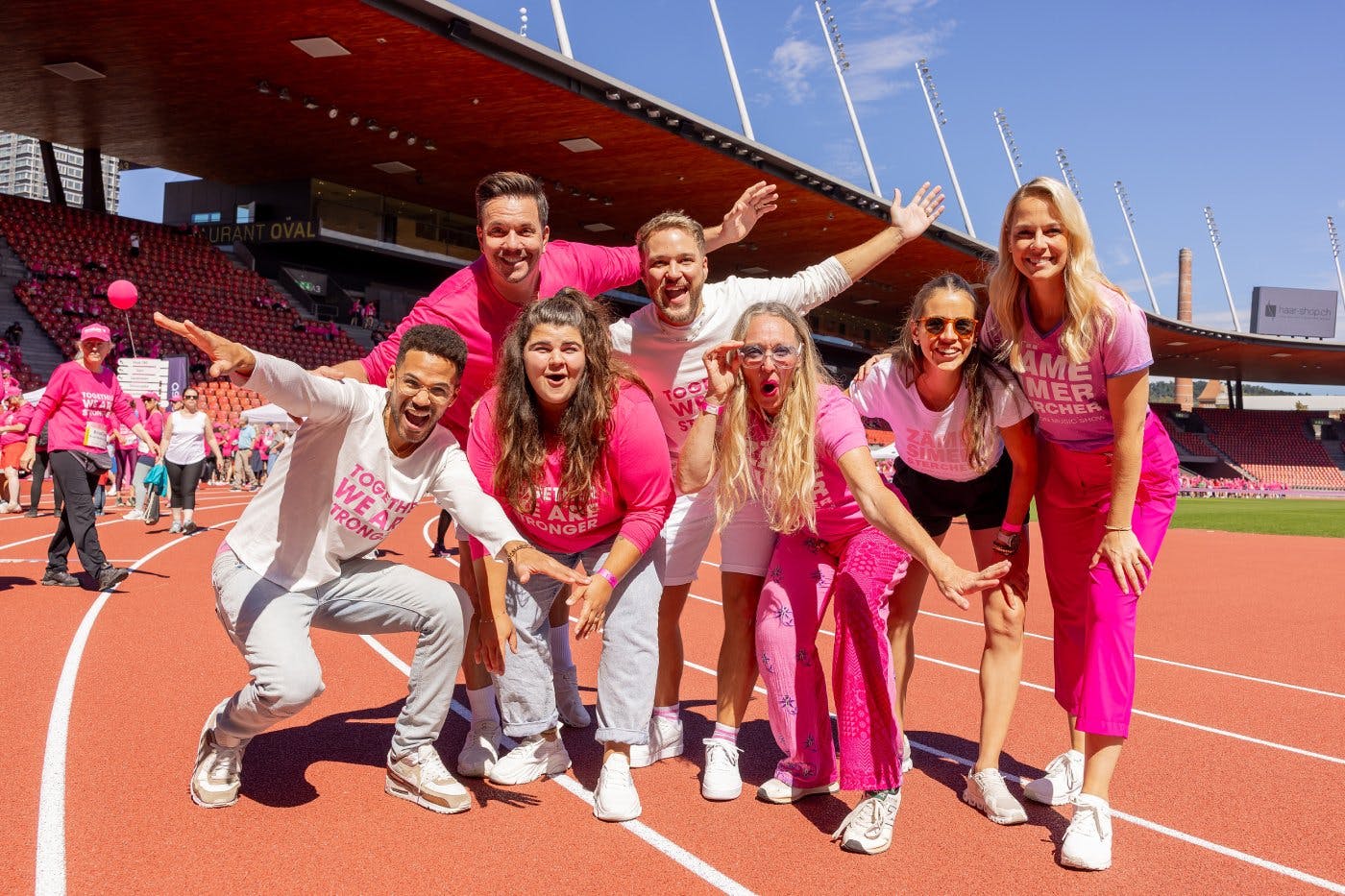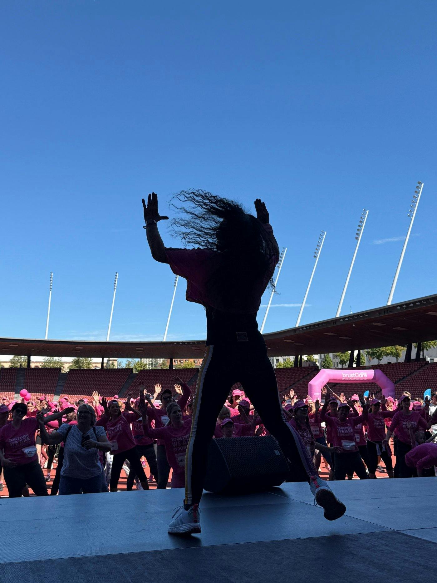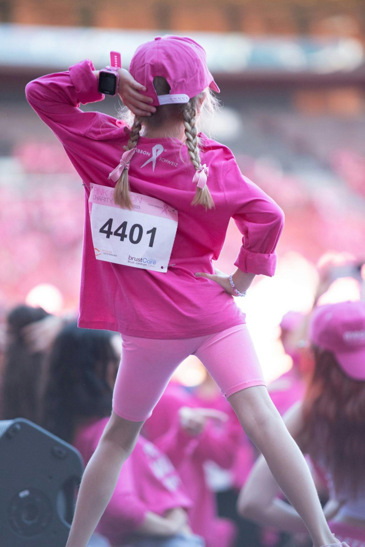 Ab 12 Uhr beziehst du dein exklusives Pink-Ribbon-Shirt im Stadion. Während Kids beim Hip-Hop-Kurs von Star-Choreograf Curtis Burger ihre Moves zeigen, sorgen Botschafterin Linda Fäh und prominente Gäste wie Jesse Ritch auf der Bühne für Stimmung. Gemeinsam kreieren sie unter dem Motto «ZÄME SIMER STERCHER» einen spektakulären Überraschungsmoment im Startribbon.