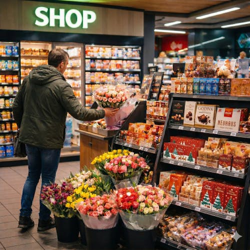 17.43 Uhr. Die Party beginnt um 19 Uhr. Sein natürliches Habitat: Die Tankstelle oder der Kiosk am Gleis 4. Er rettet sich mit Pralinen im Weihnachtsmotiv, obwohl März ist, oder einem Vanille-Duftkerzen-Traum. Der Kassenbon steckt noch in der Tüte, die zugleich als Geschenkpapier dient. Hauptsache, er ist nicht mit leeren Händen gekommen.