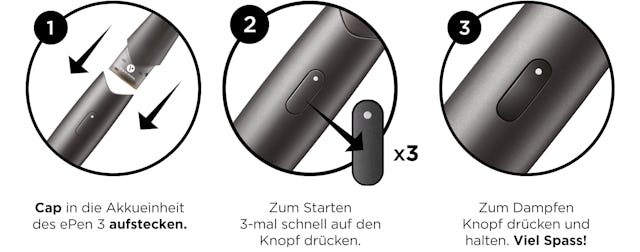 NUTZERFREUNDLICH – Bei der Entwicklung des ePen 3 wurde besonders auf die einfache Bedienung Wert gelegt. Dank der aufsteckbaren Caps ist es spielend einfach, die Geschmacksrichtungen zu variieren.