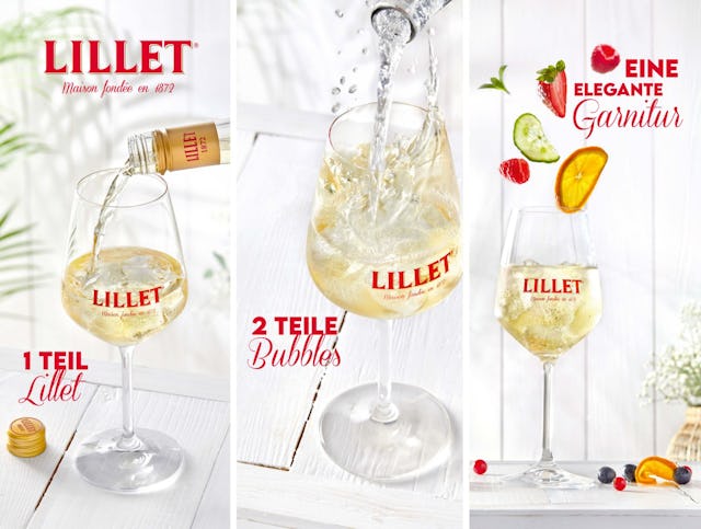 Jessica Witzel, Advocacy Manager von Lillet Schweiz erklärt: «Einerseits besteht Lillet aus erlesenen Weinen aus dem weltbekannten Anbaugebiet rund um Bordeaux, andererseits aus natürlichen Mazeraten exotischer Zitrusfrüchte. Lillet, den man am besten gut gekühlt (bei 6–8 °C) trinkt, wird übrigens bis heute ausschließlich in Podensac hergestellt – ganz nach einem alten Familienrezept aus dem 19. Jahrhundert. Lillet ist flexibel, ausdrucksstark und facettenreich – ein leichter Aperitif, der die Möglichkeit bietet, köstliche Drinks zuzubereiten.»