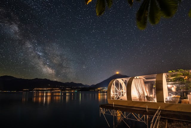 Dieses Million-Stars-Hotelzimmer besteht aus einem luxuriösen Tubbo, der direkt über dem See errichtet wurde. Vom Boxspringbett geniesst du die Sicht auf den Sternenhimmel, den Thunersee, den Niesen sowie die Viertausender des Berner Oberlands.