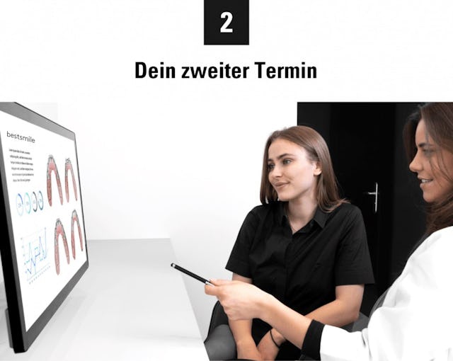 Wähle online deinen Termin. Das bestsmile Zahnarzt-Team führt einen kostenlosen Befund und 3D-Scan deiner Zähne durch, ohne Abdruck und schmerzfrei. Dir wird mitgeteilt, ob du für die Aligner Behandlung geeignet bist.