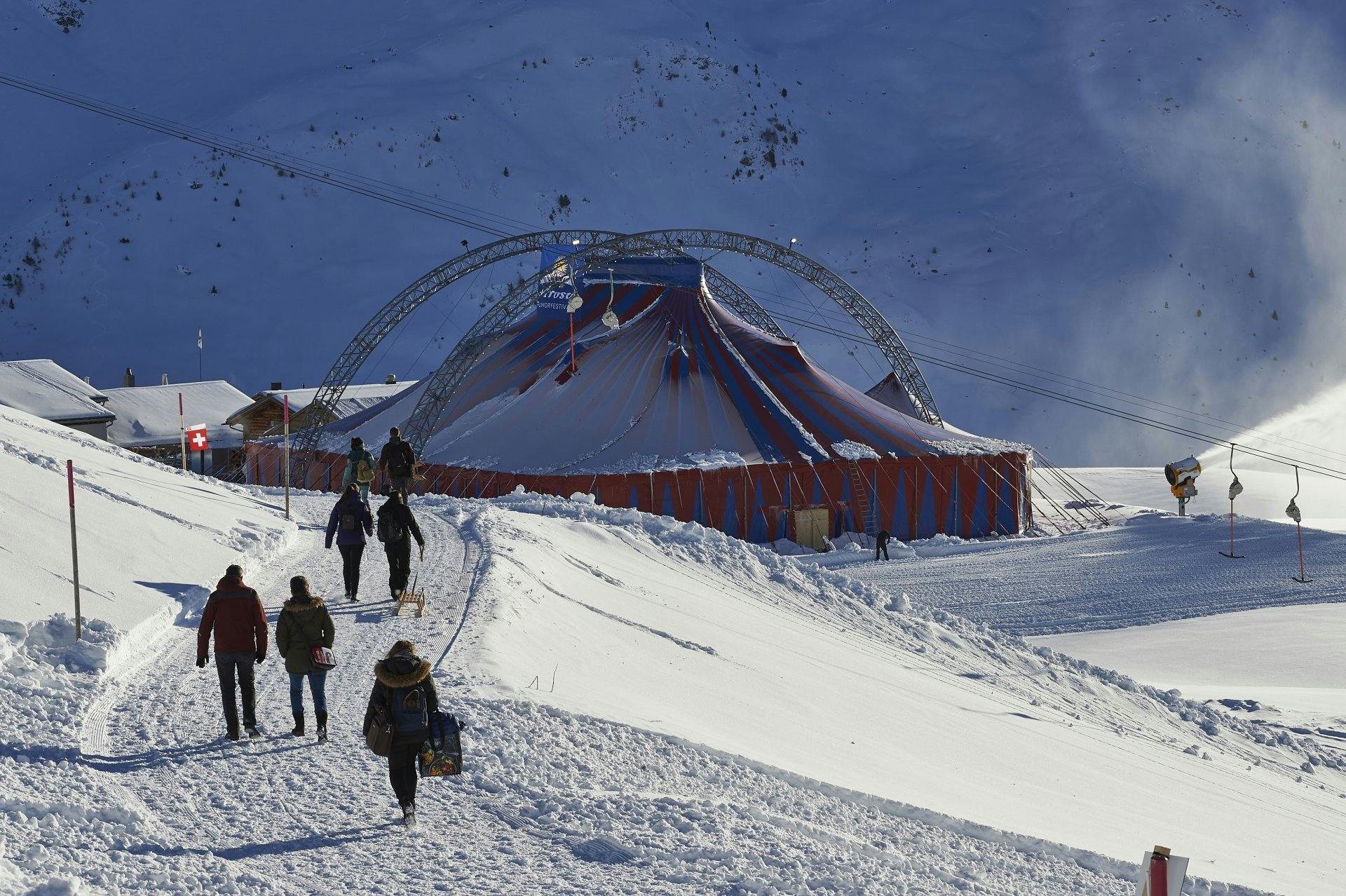 Der Charme des Arosa Humorfestivals liegt an der speziellen Lage des rot-blauen Zirkuszeltes umgeben von der wunderschönen, verschneiten Bergwelt von Arosa. Der einmalige Standort der Zeltes inmitten des Schneesportgebietes Arosa Lenzerheide macht den Besuch der Vorstellungen zu einem unvergesslichen Erlebnis. Den Hin- und Rückweg zum Zirkuszelt mitten in der einzigartigen Natur kannst du mit der Luftseilbahn Arosa-Weisshorn in Angriff nehmen oder mit einem gemütlichen Winterspaziergang durch den Schnee. Ebenfalls besteht die Möglichkeit, das Zelt mit den Skis und dem Snowboard zu erreichen. Für die Verpflegung vor den verschiedenen Comedy-Vorstellungen kannst du das urchige Gastroangebot in der Tschuggenhütte geniessen – ob Fondue, Raclette oder andere Spezialitäten, für jeden Geschmack ist etwas dabei – egal ob auf der Sonnenterrasse oder im gemütlichen Stübli.
