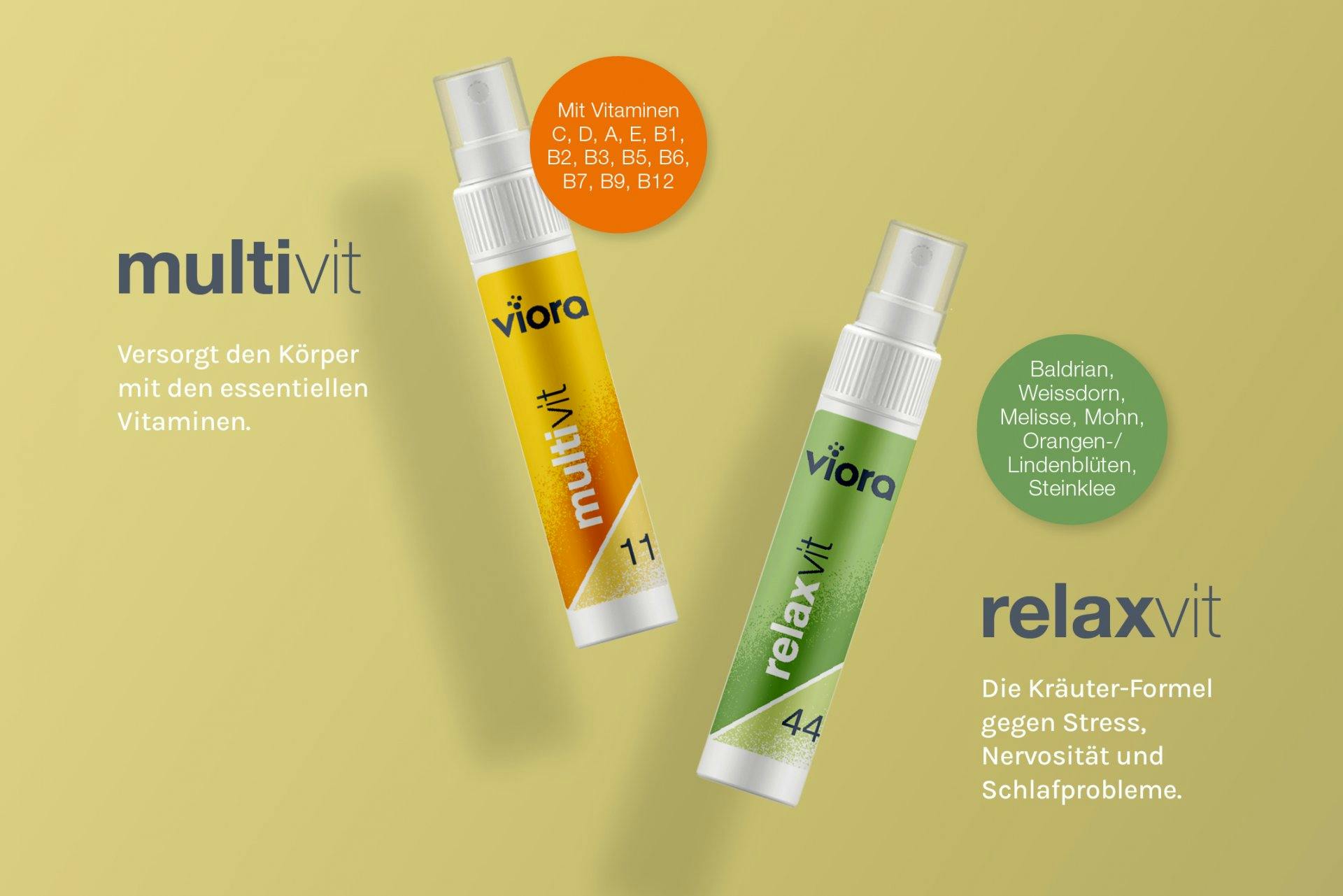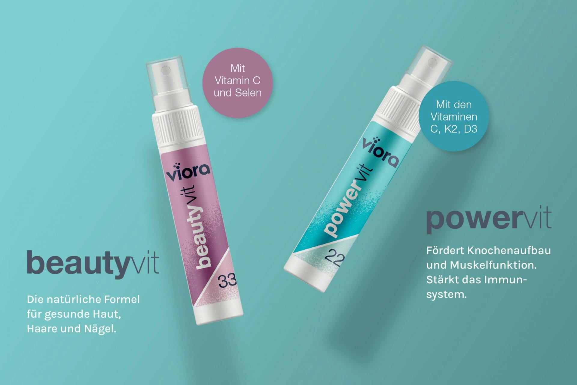 Viora-Vitaminsprays sind die ideale Lösung für zuhause oder unterwegs. Denn für die Einnahme braucht es weder Wasser noch ein Glas. Mit Viora können die wertvollen Vitamine einfach und komfortabel genau dann eingenommen werden, wenn der Körper sie braucht.