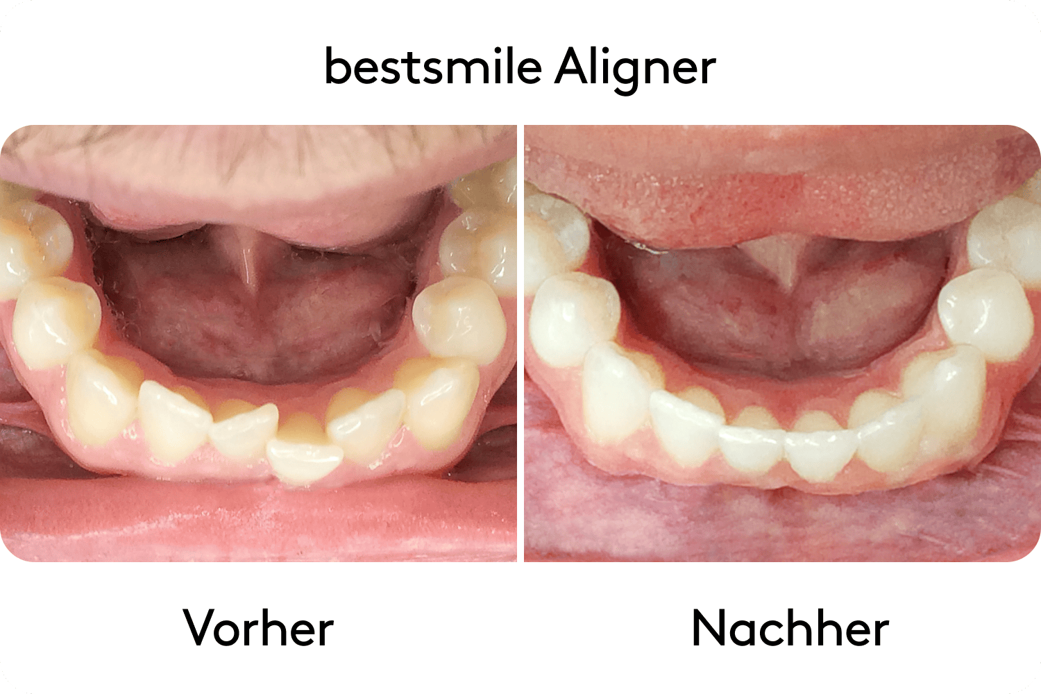 Die bestsmile Night Aligner sind durchsichtige Zahnspangen, die deine Zähne in kurzer Zeit in die gewünschte Position rücken. Mit einer Tragezeit von nur 8 bis 10 Stunden pro Nacht kannst du damit kleine Zahnlücken schliessen sowie leichte Fehlstellungen korrigieren. Während circa 4 bis 14 Monaten werden deine Zähne so ganz unbemerkt korrigiert, während du schläfst.