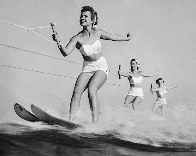 Im frühen 20. Jahrhundert entwarf der Freiburger Valentin Lehr ziemlich knappe zweiteilige Bademode – damit die Sonnenstrahlen mehr Haut erreichen können. Getragen wurden die bikiniähnlichen Teile jedoch nur von Anhängerinnen der Freikörperkultur. In den 1920er-Jahren mussten Frauen, die in der Öffentlichkeit zu viel nackte Haut zeigten, nämlich damit rechnen, verhaftet zu werden. Als in den 30ern der Trend weg von der «noblen Blässe» hin zu gebräunter Haut ging, wurden die Zweiteiler vielerorts beliebter. Etwa die US-amerikanische «Palm Beach Combination», bestehend aus einem kurzen Rock oder miederartigen Höschen und einer Art BH. Das passte den prüden Obrigkeiten aber gar nicht. 1932 wurde in Deutschland der «Zwickelerlass» verhängt, der es verbot, einen Zweiteiler in der Öffentlichkeit zu tragen. Die Nationalsozialisten verschärften die Regeln zusätzlich, indem nur Einteiler mit Beinansatz erlaubt waren.