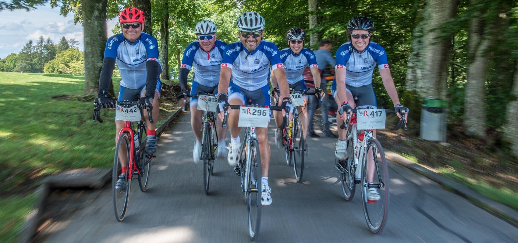Auch das ist möglich – schliess dich ihrem Team an! Ob Gelegenheits-Velofahrer, ambitionierte Velofahrerin oder Topsportler – du fährst so schnell, so lange und mit so vielen Pausen, wie du möchtest. Alle Velos und Bikes sind willkommen, auch E-Bikes!