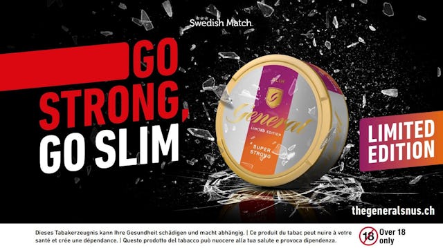 Am besten überzeugst du dich selbst von diesem superstarken und schlanken Snus – doch du musst dich beeilen, um eine Packung zu ergattern. Da es sich um eine limitierte Edition handelt, werden nur sehr wenige Packungen produziert. Also nichts wie los zu deinem K Kiosk, Avec, Press&Books oder Agrola Topshop und sichere dir deine General Super Strong Slim Limited Edition.