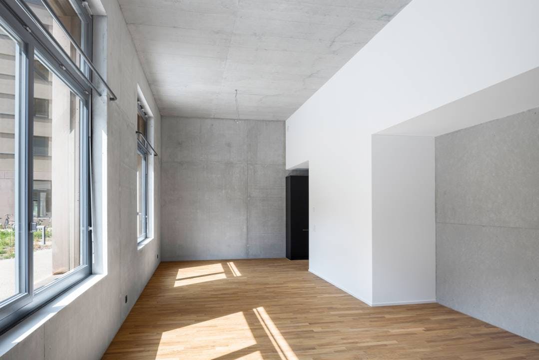 Erst im Mai wurde der markante Bau an der Erlenstrasse eröffnet. Das Quartier ist beliebt: Im neuen Stadtpark spielen Kinder, andere sitzen unter einem Baum im Schatten. Hier läuft immer etwas. Auch ins neue Einkaufszentrum zieht das Leben ein. Und die modernen Wohnungen mit komfortablem Ausbau und attraktiven Grundrissen sind beliebt. Wer hier wohnen möchte, muss sich beeilen: Nur noch wenige Wohnungen sind frei. Vor allem 3,5- und 4,5-Zimmer-Wohnungen sowie spannende Loftwohnungen und einige Wohnateliers mit bis zu viereinhalb Meter Raumhöhe sind noch zu haben. Hier haben schon verschiedene Kleinunternehmerinnen ein Daheim gefunden. In den Ateliers verbinden sie Arbeiten und Wohnen direkt miteinander.