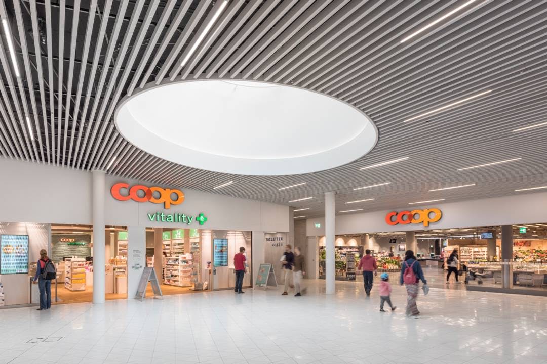 Heute profitiert das ganze Quartier von einer grossen Coop-Filiale, einem Geschäft des dipl. Ing. Fust und einer Coop-Vitality-Apotheke. Im Pop-up Showroom Space Grotesk finden die Anwohner Möbel und Design aus der Region. Bald folgen ein Fitness-Center, ein Food-Court, Matt und Elly, ein Restaurant mit eigener Brauerei und Vie Ensemble, ein Gemeinschaftsort, an dem Ideen wachsen können. Dann spielt es hier, das Leben in der Stadt.