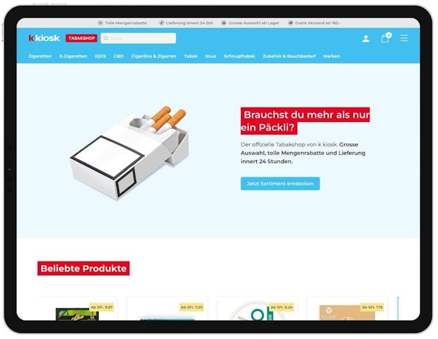 k kiosk Tabakprodukte werden nur an erwachsene Personen verkauft. Die Altersverifizierung erfolgt im Bezahlprozess über einen Scan von Identitätskarte, Pass oder Führerausweis. Zudem wirst du aufgefordert, ein Bild von dir hochzuladen. Deine Informationen werden selbstverständlich datenschutzkonform verarbeitet.