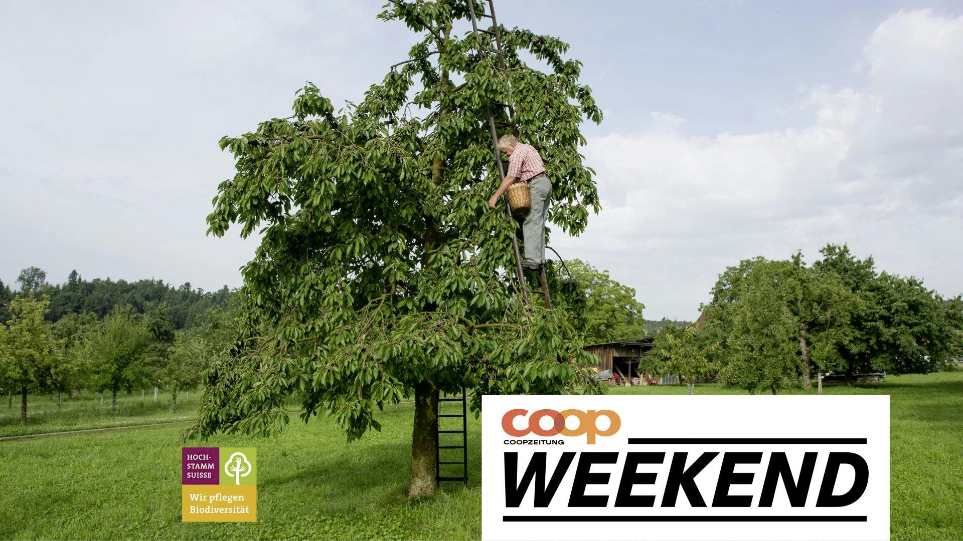 Dabei liegen die Vorteile auf der Hand: Hochstammbäume tragen zum Klimaschutz bei, indem sie sehr viel CO₂ binden. Und sie leisten einen grossen Beitrag zum Erhalt der Biodiversität, bieten sie doch vielen Vogelarten und Fledermäusen Unterschlupf. Hochstamm-Obstgärten gehören zu den artenreichsten Lebensräumen in Mitteleuropa. Natürlich gibt es auch Gründe dafür, dass die Obstbau-Tradition weitgehend von den kleineren Bäumen abgelöst wurde: Die Arbeit an den Hochstammbäumen ist mit den langen Leitern aufwendig, mühsam und risikoreich. Die Früchte werden oft nicht als Tafelfrüchte verkauft, sondern verarbeitet – etwa Äpfel zu Most, Birnen zu Birnel, Kirschen zu Kirsch oder Kastanien zu Marroni-Püree.