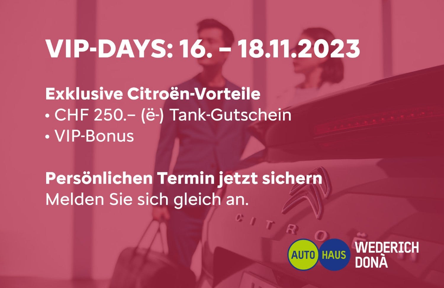 Eingeladen sind nicht nur treue Kundinnen und Kunden, sondern auch alle, die es vielleicht noch werden wollen. Während dieser Zeit kannst du dein Traum-Citroën-Modell mit einem exklusiven VIP-Bonus und weiteren Vorzügen sichern.