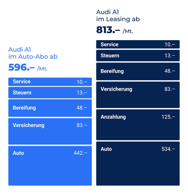 Laut dem Autogewerbeverband Schweiz sind etwa die Hälfte der Fahrzeuge auf den Strassen der Schweiz geleast. Oft verlocken die scheinbar günstigen monatlichen Leasingraten, denn diese erscheinen oft niedriger im Vergleich zu den Abo-Gebühren von Carvolution. Diese Wahrnehmung kann jedoch täuschen, da die monatlichen Kosten eines Leasings oft nicht das ganze Bild widerspiegeln.