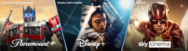 Du musst dich nicht mehr entscheiden, denn blue SuperMax vereint drei in einem: Disney+ Standard, Paramount+ und Sky Cinema sind alle im selben Abo verfügbar. Erstklassige Spielfilmsender für deinen perfekten Filmgenuss runden den revolutionären Streamingdienst ab und laden ein, die neue Ära des Streamings zu erleben.