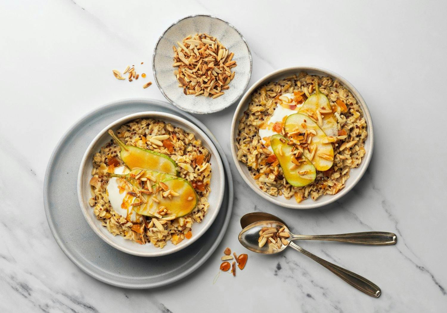 Der warme Haferbrei stammt ursprünglich aus Schottland und wird inzwischen weltweit gegessen. Im Gegensatz zum klassischen Müesli kochst du beim Porridge die Haferflocken mit Milch, Wasser oder einem Gemisch aus beidem auf. Garniere das Ganze nach Belieben mit frischen Früchten und knackigen Nüssen.