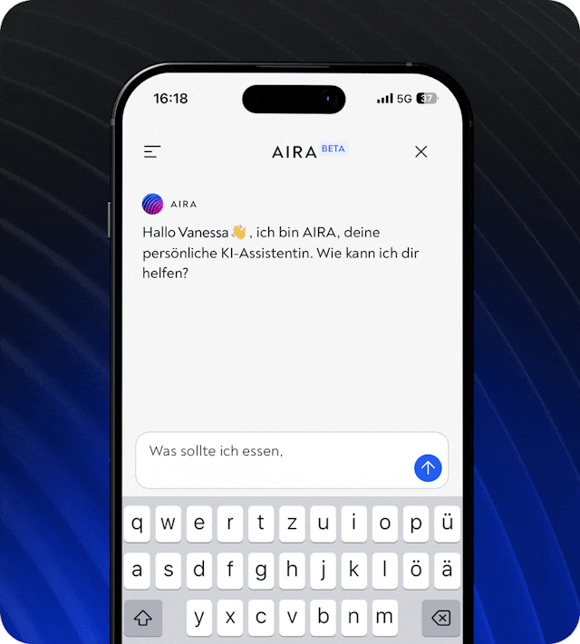 «AIRA» unterstützt dich dabei, den Alltag an deine Gesundheitsbedürfnisse anzupassen, sei es durch korrekte Ernährung zur Behebung von Mangelerscheinungen oder durch Empfehlungen für Strategien gegen Stress.