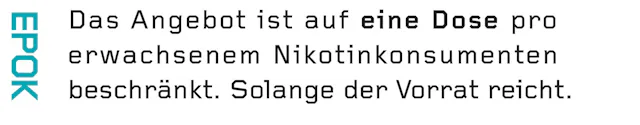 Die Innovation und exklusive Schweizer Rezeptur von EPOK wird hierzulande sehr geschätzt. Namentlich weil er die Zähne nicht verfärbt, weniger saftet als traditioneller Snus und die Lungen keinesfalls beansprucht. Dank seiner Produktqualität hat EPOK in Windeseile die Schweizer Snusszene erobert und sich regelrecht als Symbol für einen modernen und verantwortungsvollen Nikotinkonsum etabliert.