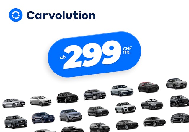 Ein Auto im Abo zum monatlichen Fixpreis. Der Schweizer Auto-Abo-Pionier Carvolution bietet rund 50 Fahrzeugmodelle an – vom Kleinwagen für die Stadt bis zum Premium-SUV, elektrisch, hybrid oder konventionell –, zum Fixpreis für Private und Firmen. Steuern, Versicherung sowie Reifenwechsel und Service beim Garagisten in der Nähe sind inklusive.