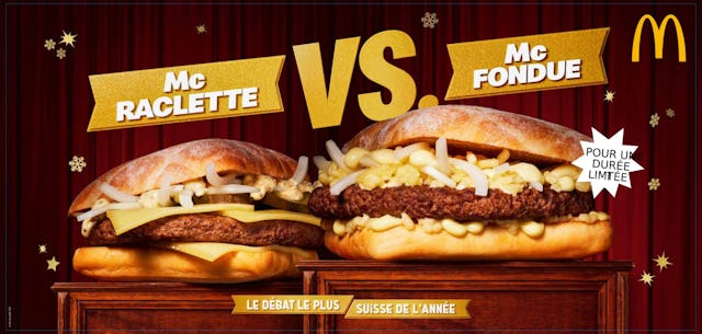 En Suisse, quand le froid s’installe, la même question revient chaque année: fondue ou raclette? Une question qui peut mener à de sérieuses discussions, même au sein des familles. Cet hiver, McDonald’s en fait une véritable bataille culinaire, avec deux burgers qui feront battre le cœur de tous les amateurs de fromage.