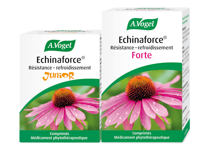 Depuis 70 ans, Echinaforce® d’A.Vogel est une référence pour renforcer les défenses immunitaires. Ce médicament à base de plantes aide à prévenir les refroidissements ou à soulager les premiers signes comme une gorge qui gratte ou un nez qui coule.