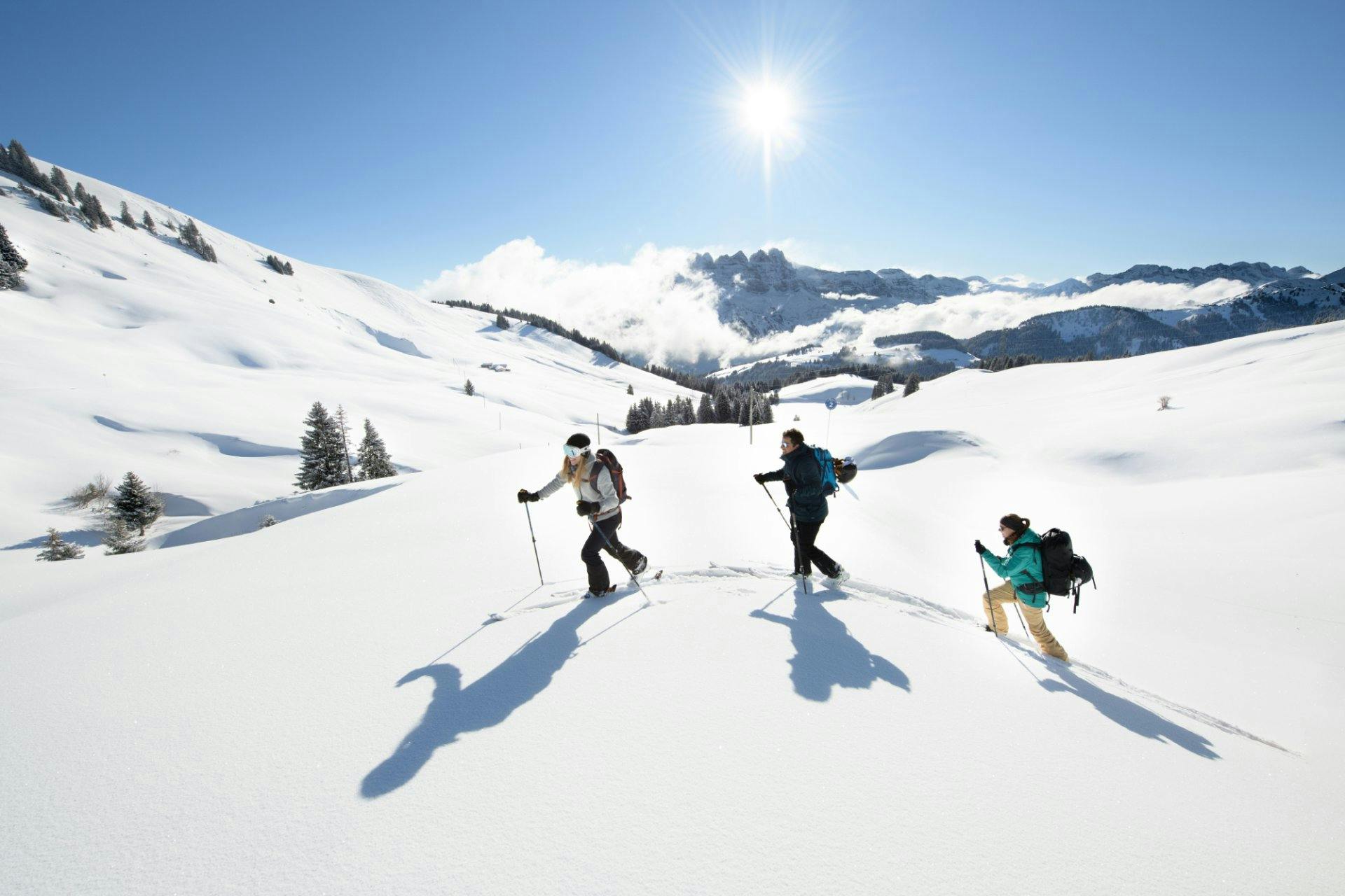 Avec quatre pistes bleues, quatre rouges et une noire, le Rando-Parc de Morgins est idéal pour les skieurs de randonnée de tous niveaux. Les parcours proposés ont une durée de 35 minutes à 2h30 et un dénivelé moyen de 600 m. Si tu débutes, pas de souci, la piste initiatique est ponctuée de tutoriels. Au programme: endurance et plaisirs de la glisse!