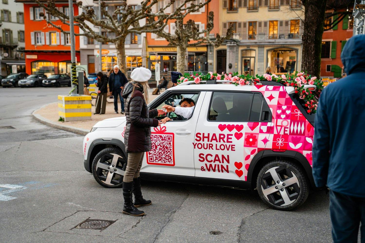 Décorée de fleurs et de cœurs, INSTER a distribué beaucoup d’amour à travers toute la Suisse. Catch the Love INSTER if you can! Si tu l’as repérée à Zurich, Lausanne ou Lugano, tu as pu participer directement au concours via le QR code sur la voiture et, avec un peu de chance, gagner un week-end wellness pour deux au Huus Gstaad Hotel. Inclus: INSTER le véhicule idéal pour se rendre à Gstaad avec son habitacle étonnamment spacieux et son autonomie remarquable, parfaitement adaptée aux roadtrips pour une liberté totale à chaque trajet.