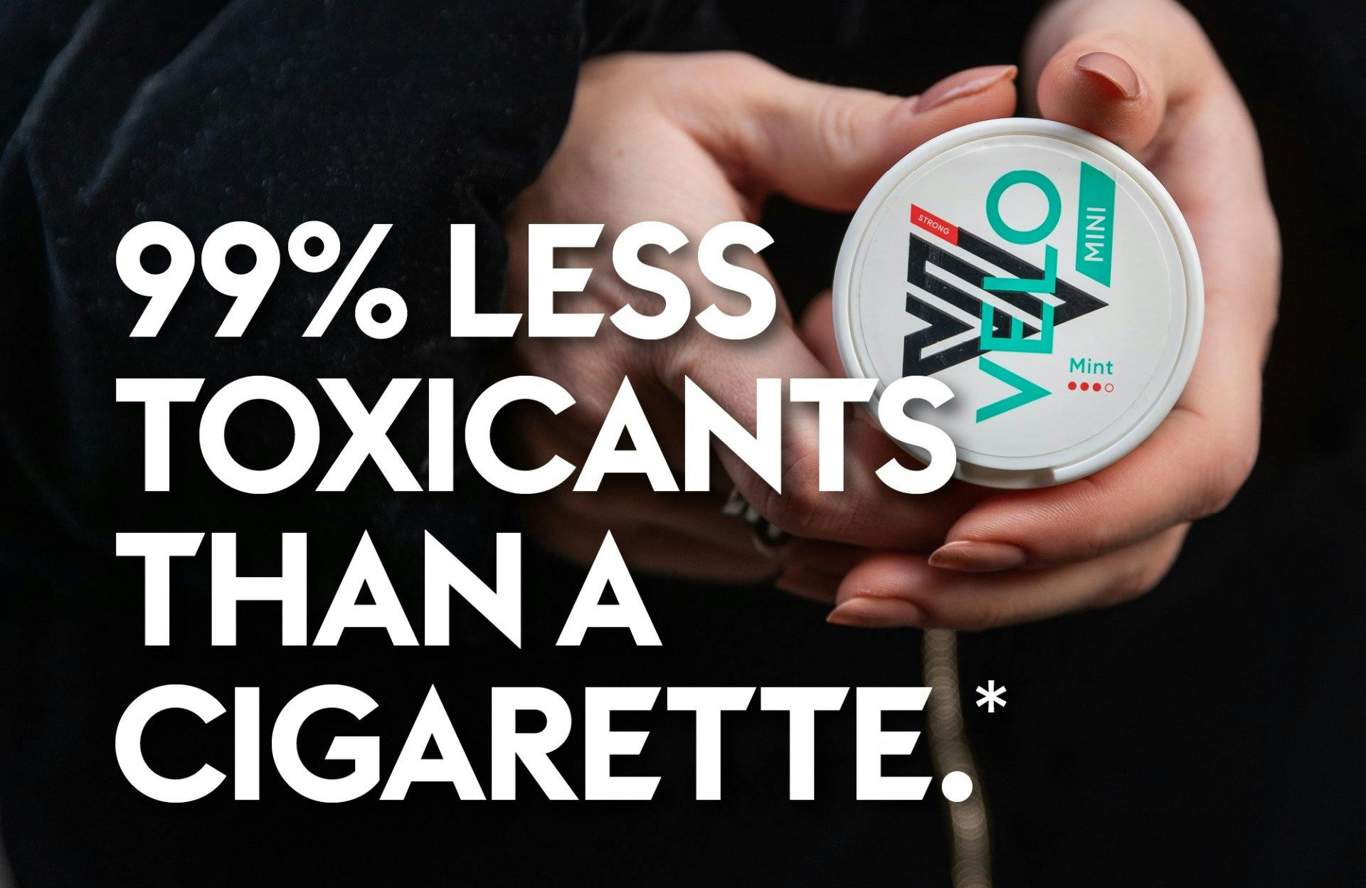 * Ce produit n’est pas sans risque et contient de la nicotine, une substance qui crée une dépendance. Comparaison basée sur une évaluation de la fumée de cigarette et des composants libérés lors de l’utilisation d’une portion de VELO, en référence à la recommandation de l’Organisation mondiale de la santé visant à réduire les quantités de 9 composants nocifs dans la fumée de cigarette.