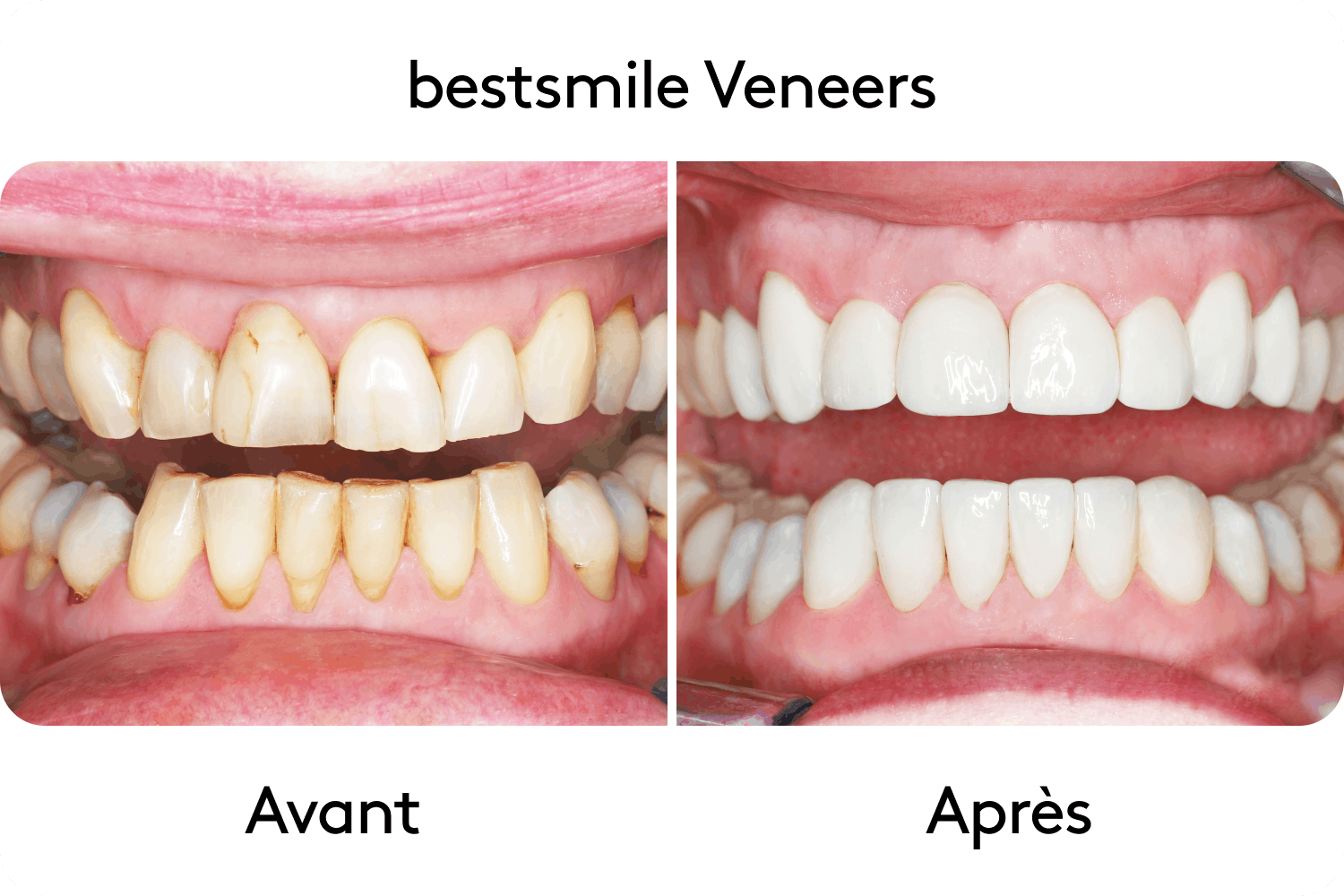 bestsmile prend la responsabilité du résultat. Si tes facettes venaient à se casser ou se décoller, bestsmile les remplacerait à ses frais. Transforme ton sourire dès maintenant - avec 1000 francs de réduction sur les facettes Veneers!