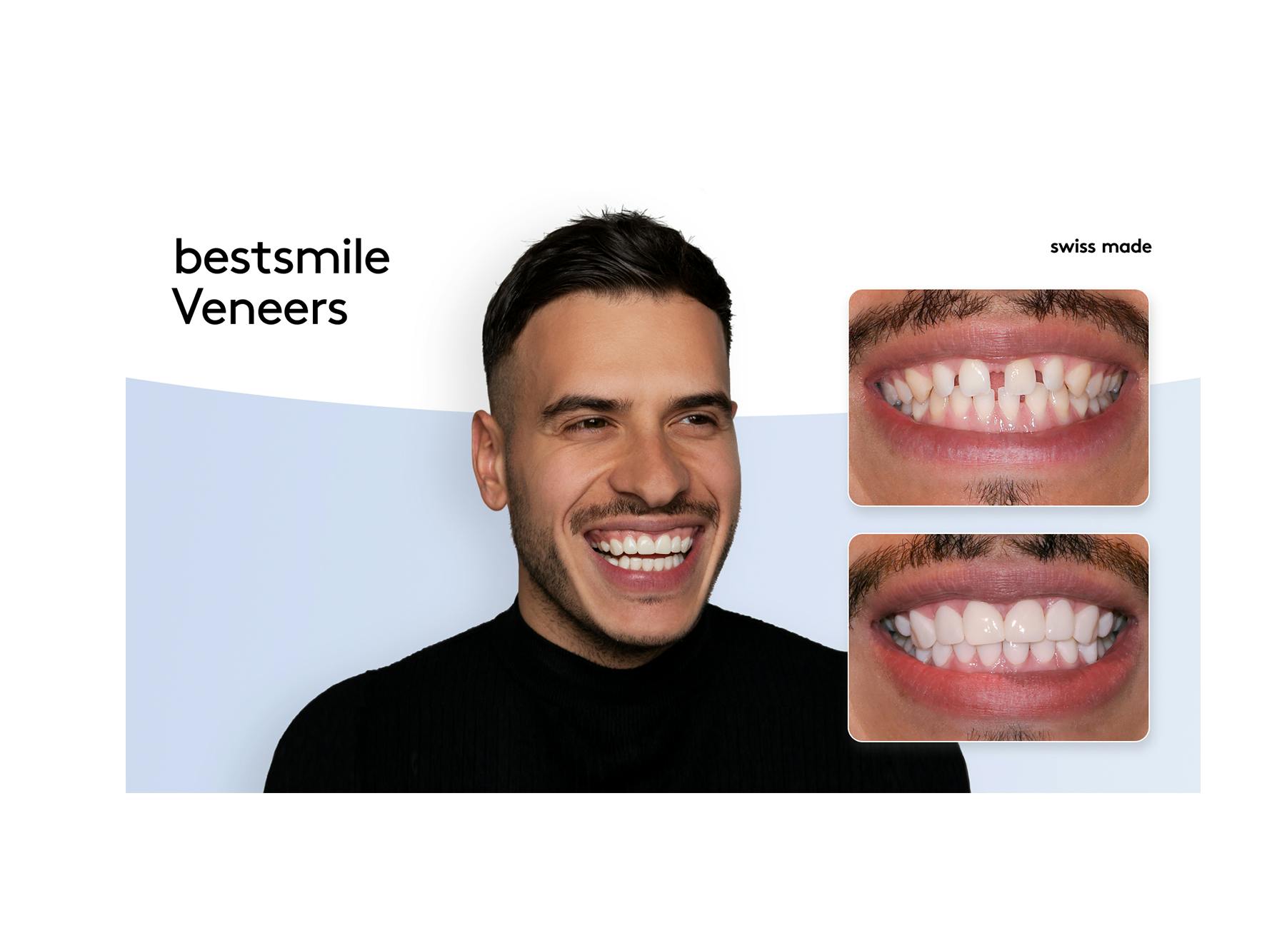 De nos jours, il existe de nombreuses possibilités d'embellir son sourire. Un brossage régulier des dents et une bonne hygiène bucco-dentaire en sont la base. Dans certains cas, il faut toutefois davantage. Une correction dentaire professionnelle peut être la solution. bestsmile propose des corrections dentaires durables avec des gouttières dentaires et des facettes dentaires, dès 40 francs par mois, qui donnent déjà des résultats incroyables en 3 à 12 mois.