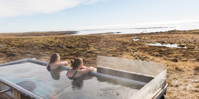 Que ce soit en pleine nature ou dans des bains confortables, en Islande, tu peux te baigner partout dans des points d’eau chaude. Kontiki te recommande les sources chaudes de Geosea avec vue sur le fjord ou les piscines flottantes des bains Vök sur le lac Urriðavatn, dans l’est de l’Islande.