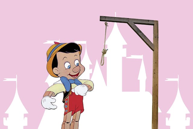Dans cette série d’histoires écrites par l’auteur italien Carlo Collodi dans les années 1880, Pinocchio fait pas mal de mauvaises actions et frôle la mort à plusieurs reprises. Par exemple, il se brûle accidentellement les pieds, ou tue sans le faire exprès un grillon qui parle – pauvre Jiminy. A la fin du récit, il doit régler la dette de tous ses méfaits et… se retrouve pendu.