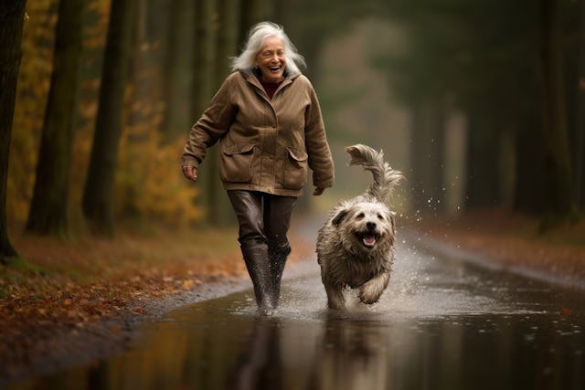 Justine, ainée de plus de 65 ans témoigne: «Je pars en promenade avec mon chien l’esprit serein.»